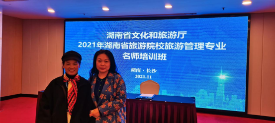 1125-27日,2021年湖南省旅游院校旅游管理专业名师培训在长沙西雅国际大酒店举行。我院冯灿飞、邱艳萍2位旅游管理专业教师参加了此次名师班学习。