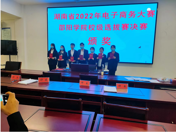 2022年5月9日晚7:00-10:00,我院在七里坪校区厚德楼金融工程实验室举行2022年第十二届全国大学生电子商务“创新、创意及创业”挑战赛(主题赛)邵阳学院选拔赛决赛,本次比赛由教务处主办,经济与管理学院承办。此次比赛由经济与管理学院管理科学教研室主任王周火副教授主持,经济与管理学院院长肖功为教授、副院长杨琴博士、国际经济与贸易教研室主任曾海燕副教授、基础教研室主任宁科杰副教授、旅游管理教研室主任邓星炬老师及电商运营导师何宜军副教授受邀担任比赛评委。