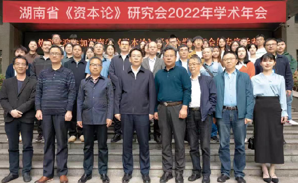 湖南省《资本论》研究会2022年学术年会于2023年4月15日在湖南工商大学举行。参加会议的有来自湖南工商大学、湖南大学、湘潭大学、湖南科技大学、湖南省委党校、国防科技大学等高校的师生和省社科联的领导。湖南工商大学易棉阳副校长致欢迎辞,研究会刘乐山会长致开幕词,后续议程是肖万春、向国成、陈志烨、湛永、吴楠、刘乐山等各位教授主题发言。湖南大学陈志烨教授的发言题目是《航母制作上的劳动空间》,陈志烨教授认为,资本论研究可以解决四个方面的问题:一是资本论的研究的意义及新方向;二是什么是马克思主义,真正的马克思主义意味着什么;三是中国为什么要进行改革开放;四是政治经济学能否数学化。湖南工商大学的向国成教授则介绍了其2022年国家社科基金重大项目《马克思恩格斯的分工与市场思想及当代价值研究》。刘乐山会长则介绍了他正在研究的近50余万字鸿篇巨著《20世纪50、60年代消费经济理论的初步探索》最新进展。专家学者也关注近年的人口问题,如何应对2016年以来中国人口出生率的下降趋势和人口老龄化趋势。