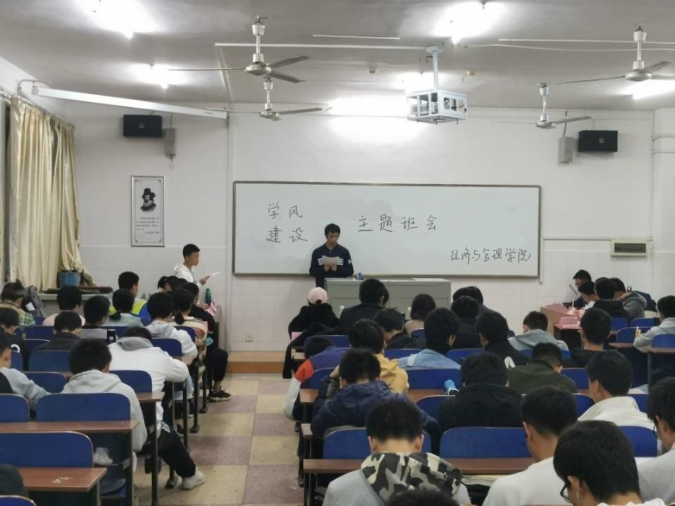 树新风,争先优,新学期要有新风尚。2020年11月12日,应学院学风建设要求,我院学业发展部组织在大一晚自习教室里开展了经济与管理学院学风建设主题班会,本次主题班会意在新学期中树立良好的学习风气,激发学生的进取意识,为经济与管理学院再添光彩。