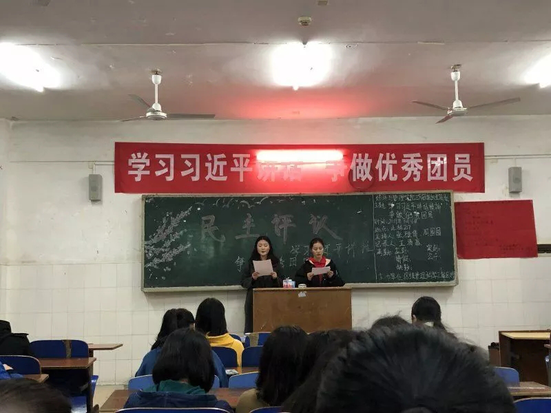 为深入贯彻落实习近平讲话精神,促进团员思想认识水平提高。3月17日晚19点,由经济与管理学院团总支组织部主办的以“学习习近平讲话,争做优秀青年”为主题的民主评议活动在各班教室积极开展。此次活动中,经济与管理学院副书记刘平宇、经管学院团总支书记宁顺灯老师及组织部三位部长纷纷前来指导。