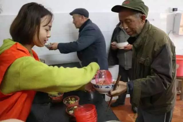 另一边厨房的场面也十分热闹,洗菜、切菜、烹饪一切都恰到好处。春日里,来到这陌生而又温暖的地方为爷爷奶奶准备一顿饱含心意的简餐,这是志愿服务者们力所能及又当仁不让的事情。中午十二点,在老人们准备开饭时,志愿者们细心地为其盛好饭菜,并递到手上。直到看到爷爷奶奶开心吃下并且面带笑意时,志愿者们才将那颗忐忑不安的心放下。在那一刻便只有了欣喜与感动,惟愿此事天下平常,万家皆如此。