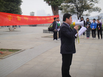 上午8点和9点,所有志愿者分两次乘坐5辆公交车先后到达资江南路,此时的资江南路早已被一篇篇雷锋日记和雷锋生前事迹介绍包围。活动正式开始之前,邵阳市中国共青团团总支肖部长和经济与管理系团总支书记廖老师分别对本次活动进行了发言,肯定了同学们积极学习雷锋的精神,并强调了此次活动的安全注意事项。随后志愿者们还在宣传板上贴上自己的雷锋宣言,并在横幅上签字,表明了学习雷锋同志精神的决心和斗志。接着,志愿者便对步行街进行了彻底的大扫除,包括对花丛和座位的打扫,期间,邵阳日报和邵阳电视台的记者也进行了采访和拍摄。11点左右,步行街的面貌恍然一新。