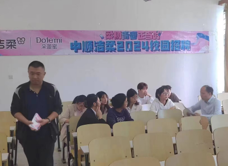 中顺洁柔纸业股份有限公司(简称中顺洁柔)是中国最早的集研发、生产及销售为一体的多元化集团企业之一。自1979年进入生活用纸行业,并于2010年在深交所成功上市,是国内首批A股上市的主营生活用纸企业,也是国内生活用纸第一梯队成员。此次招聘会,中顺洁柔将为我院毕业生提供10-15个岗位,这为时不过一个半小时的招聘会,让同学们对未来、工作有了更多的方向与目标,收获颇丰。