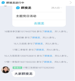 在活动主持人张斯姣同志采用群接龙方式对全体学生党员考勤中,活动正式开始。