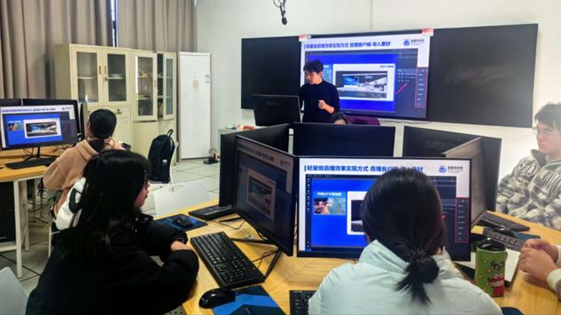 本次培养课程内容围绕直播行业基础知识、高品质直播拍摄与导播实操、MR SaaS和AI直播技术等前沿领域展开。通过“理实一体”的教学模式,学生不仅能够学习到理论知识,还能在实战演练中掌握直播技术的实际应用。据邵阳学院经济与管理学院院长杨琴介绍,为积极落实《湖南省教育厅关于加强人工智能赋能高等学校学科专业建设的通知》﹝2025﹞112号,在学校领导层的高度重视与前瞻性布局下,本次培训打破了传统实习实训的围墙,大胆引入了AI脚本撰写、AI图像生成、AI视频合成、AI数字人直播等前沿技术,引导学生投身于当下最火热的“AI+”创作蓝海。学院党总支书记刘赟表示:“最前沿的技术实战提升了人才培养质量,通过引入AI和MR等新技术,让学生在学习过程中紧跟行业发展趋势,为未来的职业发展打下坚实基础。”