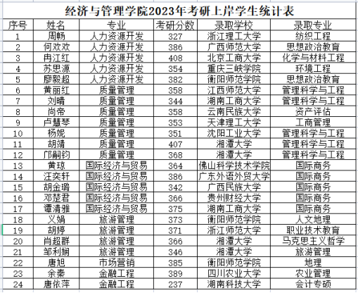 为更好地调动我院学生考研积极性,经济与管理学院于2023年5月8日晚上7点在明德楼南T2教室举办考研经验交流会。2023年,我院研究生上岸共计24人,较2022年取得重大突破,其中,胡靖以407分的高分被湘潭大学录取,肖超群、义娟、胡婷、邹利娴同一寝室4名同学全部成功上岸。