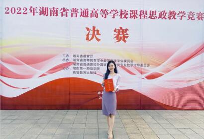 2022年9月16日,由湖南省教育厅主办、湖南第一师范学院与高等教育出版社协办的2022年湖南省普通高等学校课程思政教学竞赛决赛顺利闭幕,邵阳学院经济与管理学院范思媛老师及教学团队荣获经管法组三等奖。