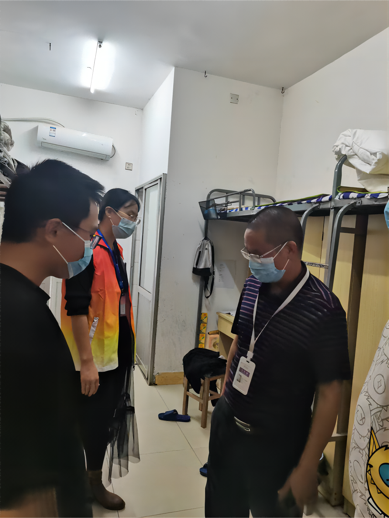 在学校封闭管理期间深入学生寝室,与学生近距离交流,了解同学们的心声诉求,也是我院党总支落实“我为师生办实事”的具体体现。这不仅有效缓解了学生产生的焦虑情绪,更拉近了学院与学生的距离,增强了同学们的幸福感和归属感。