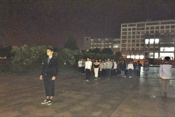 1021日这个爽朗的夜晚,邵阳学院七里坪校区明德楼前经济管理系的同学在认真的练习方阵。虽然夜晚有些寒冷,但同学们一个个精神抖擞、严肃认真的练习着。