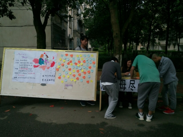 本次母亲节文化周起止时间是5月7日至11日,为确保活动顺利召开,5月7日,召开了动员大会,并将通知文件下发到各班;8日,在四栋门口摆点宣传,并提供便利贴,组织学生写上想对母亲说的话贴在展览板上;9日,主办方选出部分优秀作品在经济与管理系学风建设微信平台上进行展示,并组织学生投票,选出最受同学喜爱的作品;10日,同学们参与微博话题“知恩感恩,付诸于行”讨论,说出想对母亲说的话;11日,在经济与管理系学风建设微信平台上公布获奖公示。